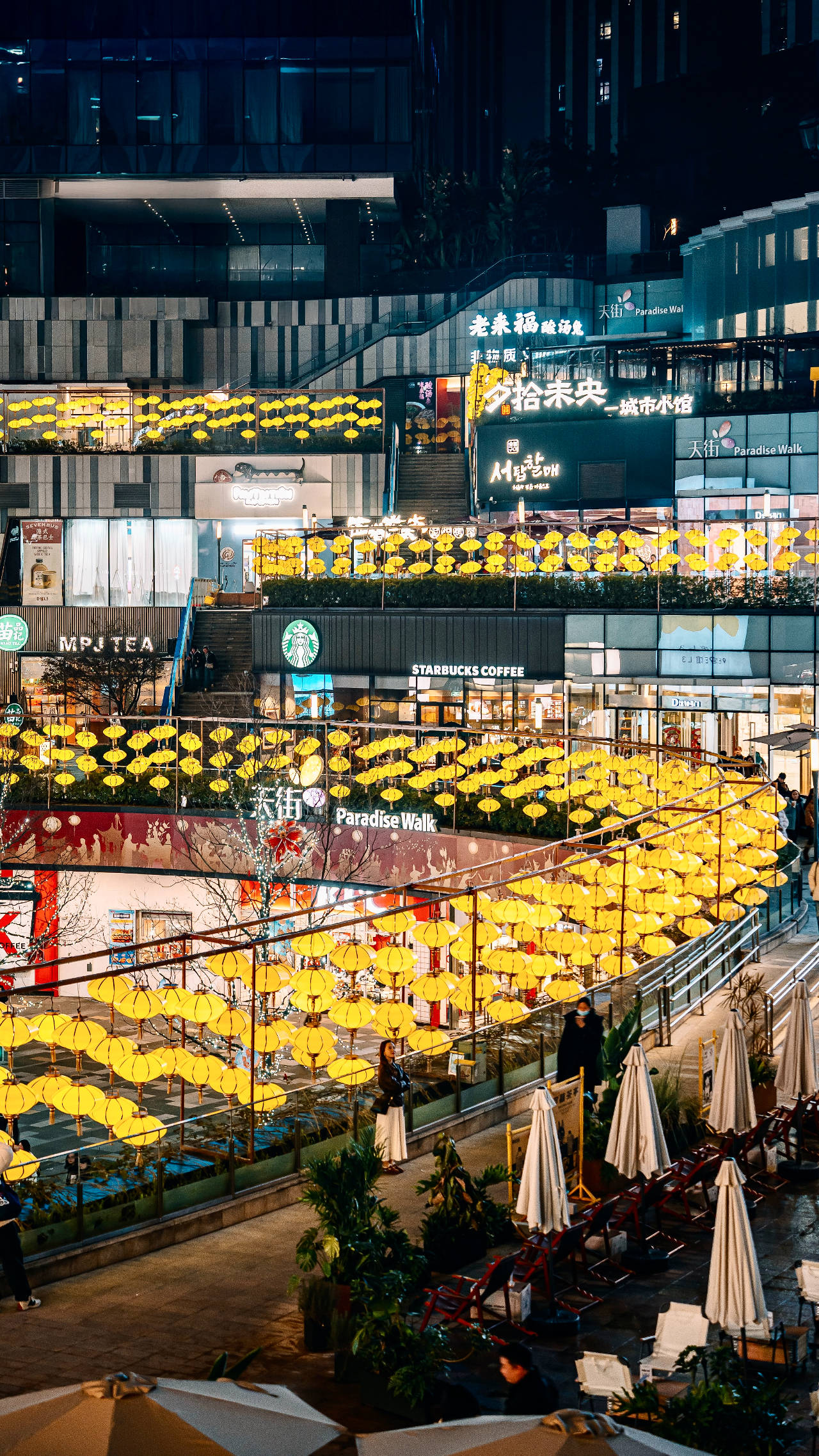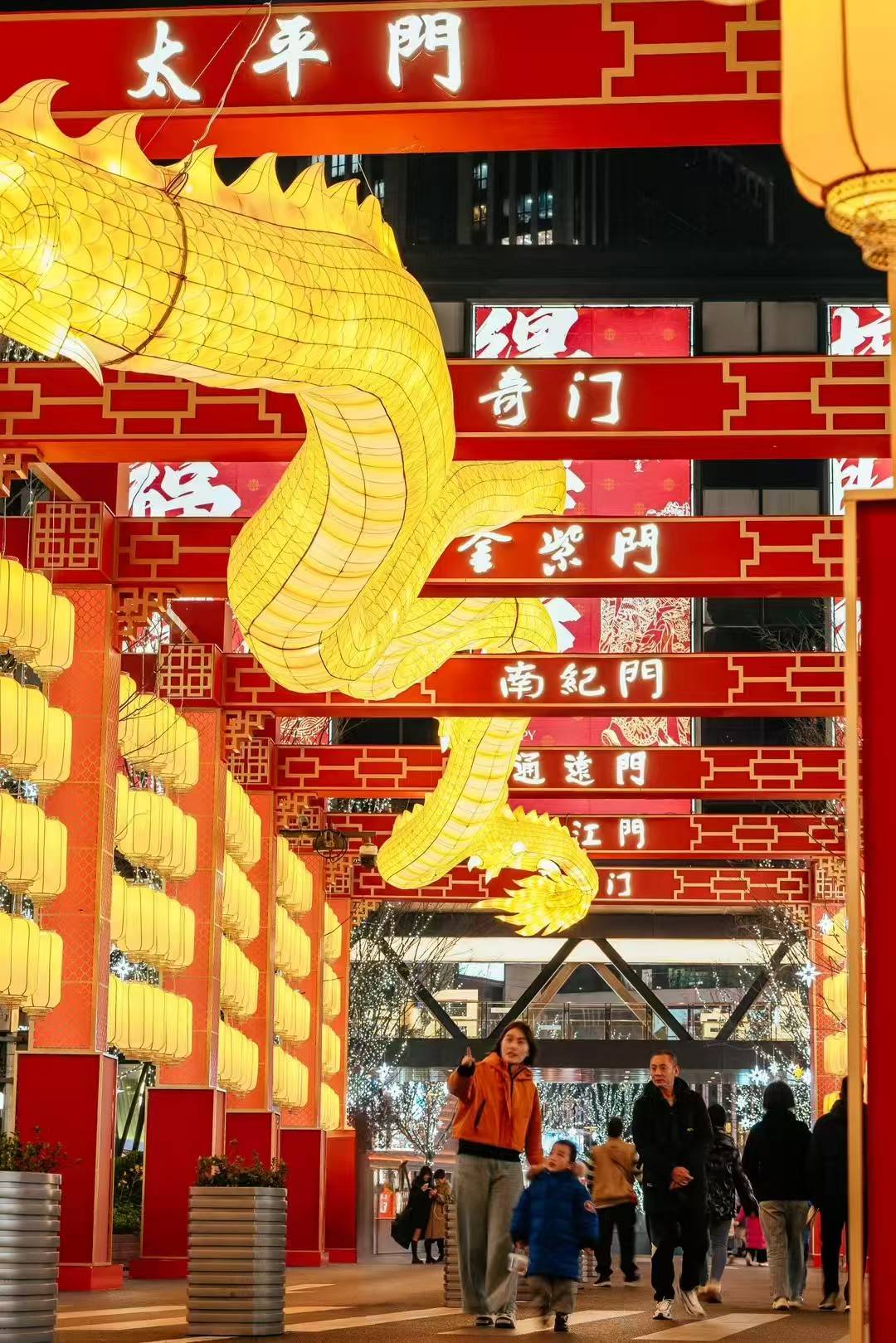 (二)融合在地文化基因,重塑空间体验价值。以“重庆基因+未来场景”重构空间价值。物理层面,打造时代大道品质休闲Citywalk街区,缩窄车道30%,腾出1.2万平方米“星光草坪”公共艺术公园,引入Peets咖啡等连锁茶咖、轻餐品牌,携手江南布衣举办秋冬风尚大秀,客流量提升3倍;升级十字大道品牌首发大道,聚集MOF/少女百货、Kaalixto等首店品牌、知名潮牌,构建“潮玩+文旅地标”的社交主场。文化层面,打造“5馆×4季”主题场景矩阵,春季联动洪崖洞非遗打造江崖音乐节、冬季融合防空洞文化打造洞穴温泉市集,“天街庙会·摆场龙门阵”新年超级场景等节日美陈亮相出圈,年举办主题活动120场,文化体验消费占比由12%提至41%,实现从“消费场所”向“城市文化地标”质变。