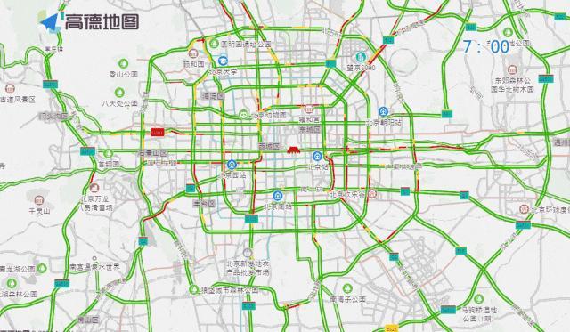 早高峰期间,城区环路部分路段,以及菜户营南路、通惠河北路、西直门北大街、德胜门外大街、圆明园西路至万泉河路、阜石路、莲石东路等道路进城方向,以及京藏高速、京承高速、京通快速、京港澳高速、机场高速等高速公路进京方向车流量较大,高峰时段为7:00—9:00,周一通行压力将尤为突出。晚高峰期间,城区环路、东六环部分路段,以及万泉河路至圆明园西路、通惠河北路、莲石东路等城区道路出城方向车流集中,京藏高速、京承高速、京通快速、京港澳高速、机场高速等高速公路出京方向车流量大,高峰时段为17:30—20:00,周五和限行尾号4和9的周一通行压力将尤为突出。