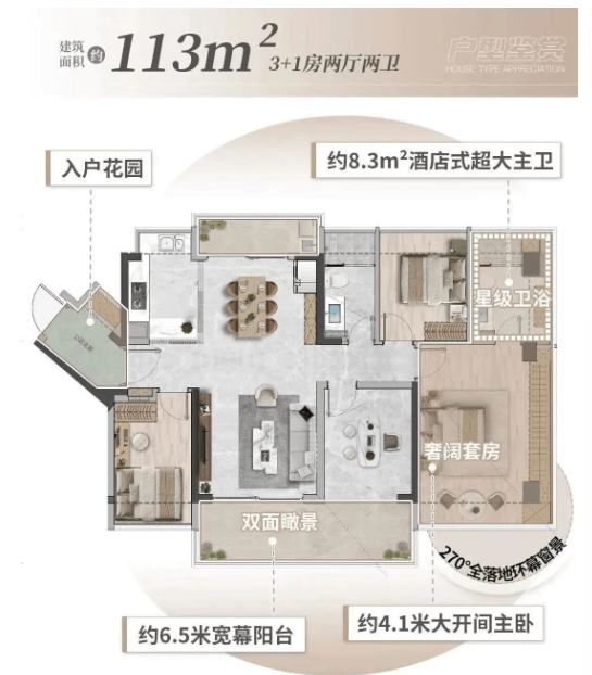 民盈高田国贸府在户型设计与装修标准上,同样展现出了极高的专业水准与人性化关怀,为不同需求的家庭提供了多样化的完美选择。项目主打的几款主力户型,每一款都堪称经典,充分体现了“空间革命”的理念。首先是F户型,建面约91平方米三房两厅两卫,实用率超100%。该户型配备了约6.4米的超宽视野阳台,它宛如一条梦幻的空中走廊,将室外的美景毫无保留地引入室内。步入室内,餐客厅一体化的设计让人眼前一亮,每一个角落都散发着和谐与温馨的气息。主卧套房,宛如一座静谧的私人宫殿,约4米的大开间尽显大气与奢华。约5.8平方米的主卫,更是将舒适与精致演绎到了极致。主卧的270°全落地环幕窗景,如同一幅巨大的动态画卷,将城市的天际线、四季的变换尽收眼底。其次是C1户型,建面约113平方米3+1房两厅两卫,实用率超100%。配备了约6.5米的宽幕阳台,无界观景,换新生活场景。约4.1米的大开间主卧,约8.3平方米的主卫,殿堂级私浴享受。同样主卧也有270°全落地环幕窗景,兼具奢华。再者是A户型,建面约140平方米4+1房两厅三卫,实用率超100%。在新规的改变下,该户型实现了飘窗高赠送,比市面上同面积户型多一房,当你踏入家门,该户型带来的双套房三卫的贴心布局,两间套房宛如私密的宫殿,为家人打造出专属的静谧之地。六开间南向布局、约16米的超宽采光面,更是将这份光明与温暖演绎到了极致。南北双阳台的设计,更是沐浴阳光、品味生活的绝佳之地。约5.4米的灵动客厅,承载着家庭的欢笑与温馨,让这里成为了家人聚会、朋友聚会的理想场所。而那约35平方米的豪华酒店式套房,更是将奢华与舒适演绎得淋漓尽致。每一处细节都彰显着尊贵与品质。让人瞬间忘却一天的疲惫,沉浸在极致的舒适之中。所有户型均采用创新设计,确保南北通透,户户无遮挡。在梯户比设计上,项目科学合理,确保了居住的私密性与舒适度。在装修标准上,项目坚持高品质交付,选用一线品牌建材,工艺精湛,细节处理到位,力求为业主呈现一个拎包入住的完美之家。高得房率与人性化的设计,使得每一平方米都物超所值,让居住体验达到极致。民盈高田国贸府的户型设计不仅考虑了当下的居住需求,更前瞻性地考虑了家庭未来的成长变化,灵活多变的空间布局,让家能够伴随家庭一起“生长”。无论是二人世界、三口之家,还是三代同堂,都能在这里找到最适合自己的生活空间。这种对户型的极致打磨,体现了民盈与高田对用户需求的深刻理解与尊重,也是其能够赢得市场口碑的关键所在。
